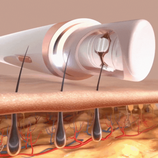 Lorsque l’appareil glisse sur la peau, il élimine microscopiquement les poils indésirables, laissant votre peau lisse et sans poils.